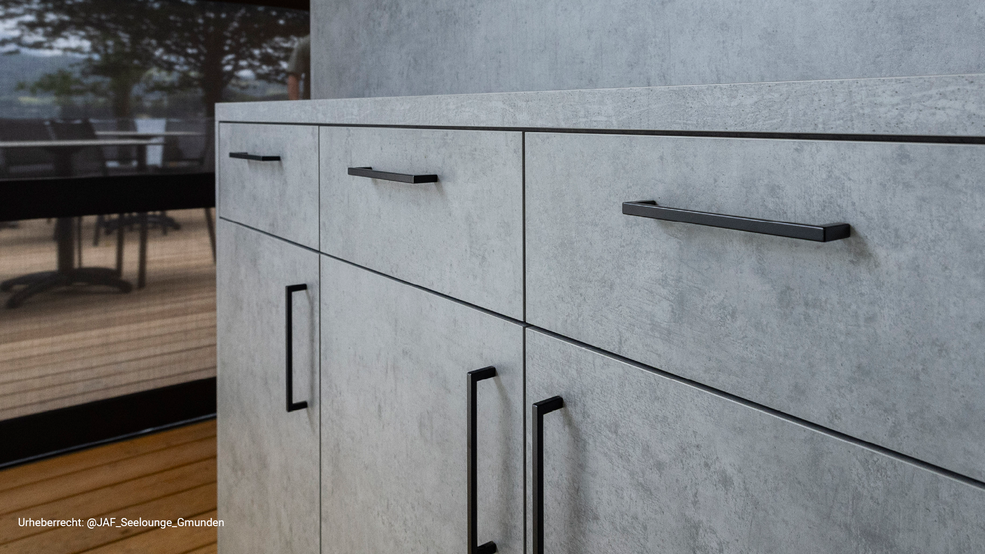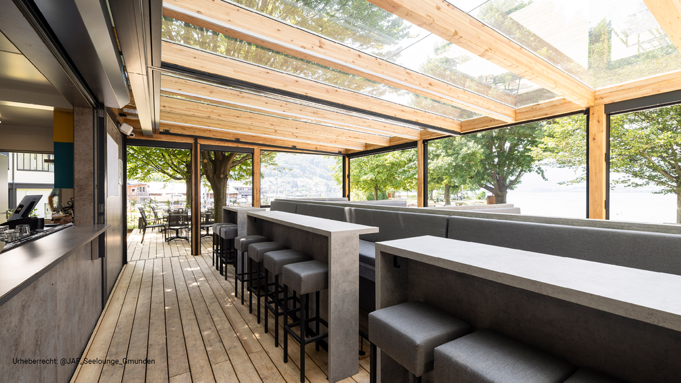 Dank purenit® konnten die Architekten und Handwerker der Seelounge am Traunsee ein harmonisches Gesamtbild schaffen: modern, langlebig und funktional – eine Referenz für den Einsatz von innovativen Werkstoffen im Gastronomie- und Hotelleriebereich.