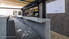 Im Innenbereich der Seelounge wurde purenit® als Funktionsmaterial verarbeitet. Es dient als Basis für Möbel- und Einbauelemente, die besonderen Anforderungen an Feuchtebeständigkeit, Formstabilität und Langlebigkeit gerecht werden. So profitieren die Sitzmöbel, Ablagen und Einbaumöbel von den praktischen Eigenschaften des Materials.