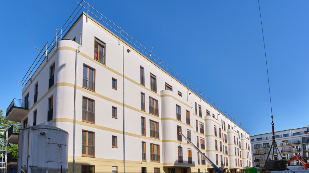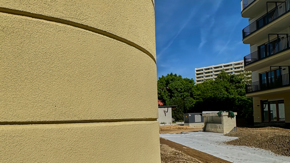 Gestalterisch bietet das zugelassene WDVS Alsitherm PUR 024 große Freiheit: Beim Quartier „Lück“ kamen sowohl verputzte Fassadenflächen als auch Klinkerriemchen zum Einsatz, ergänzt durch Bossen im Erdgeschoss und harmonische Rundungen. Die sehr guten Brandschutzeigenschaften der purenotherm S-Dämmplatten machten zusätzliche Brandriegel überflüssig – ein Plus in Planung und Ausführung.
